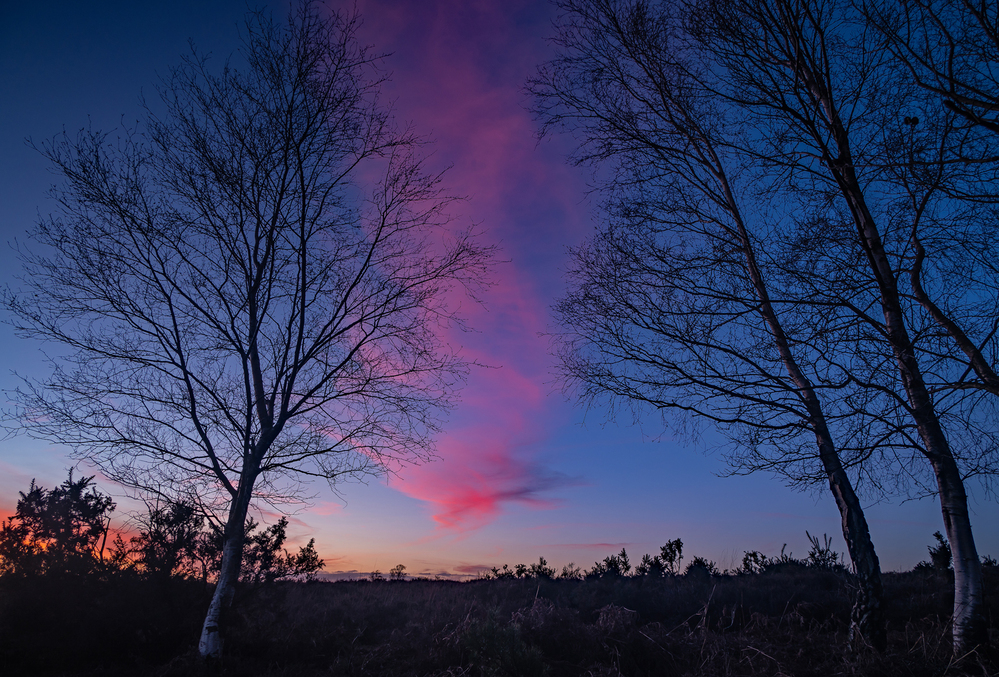 Birch and Sunset, Turf Hill